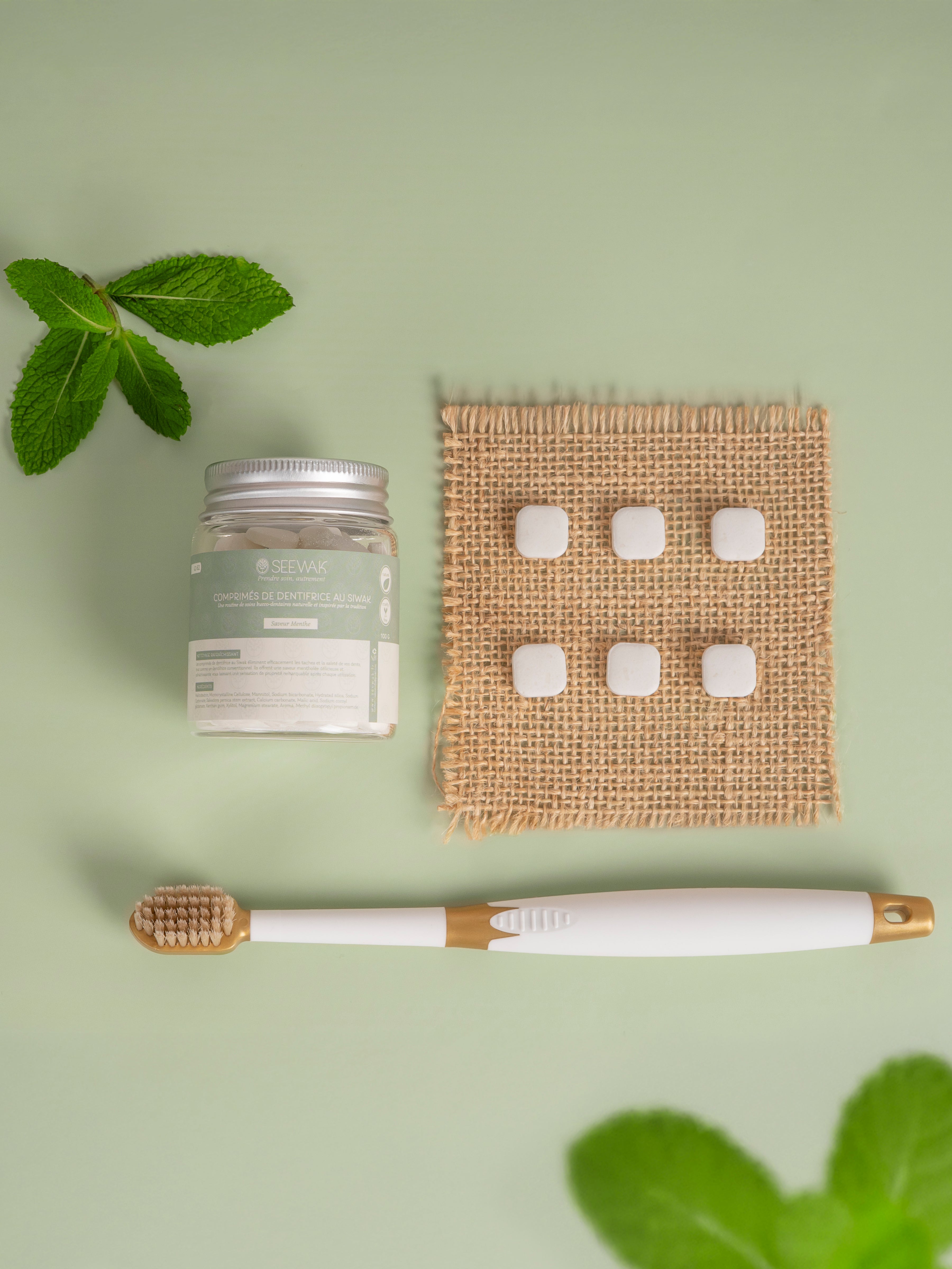 Seewak nettoie et blanchit naturellement les dents, rafraîchit l’haleine, protège les gencives et préserve la planète.